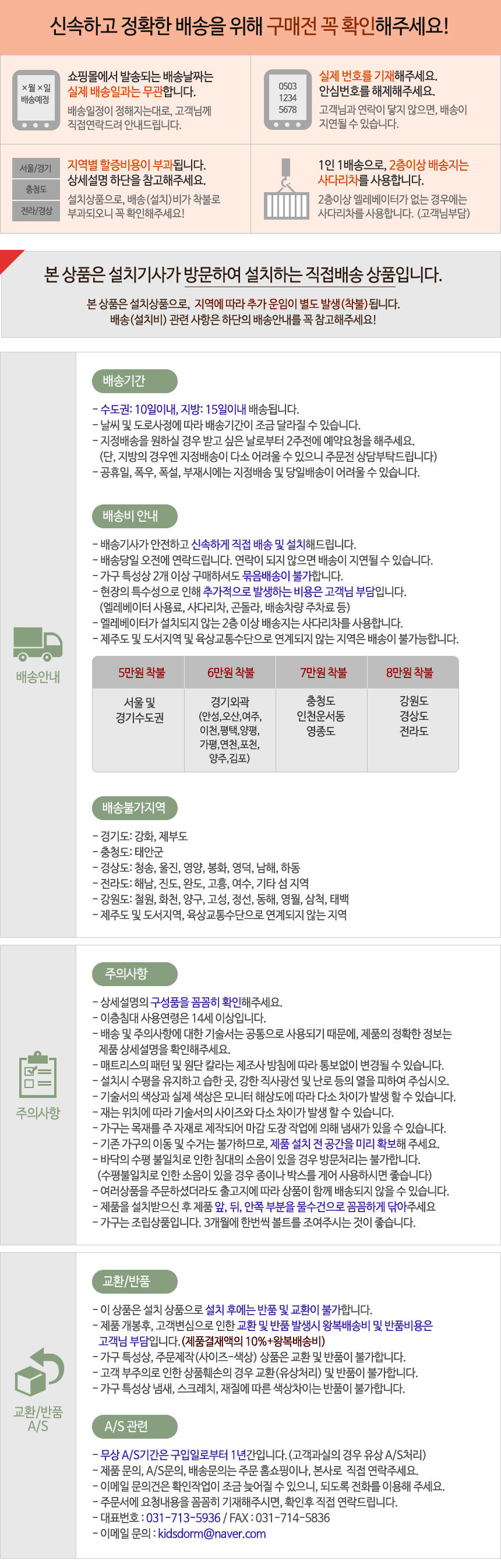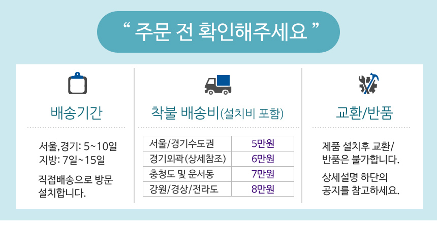 배송비(설치비포함)- 상세설명 참조(지역별 할증) / 묶음 배송 불가
